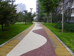 (3)在级配石上铺设40mm厚彩色透水层